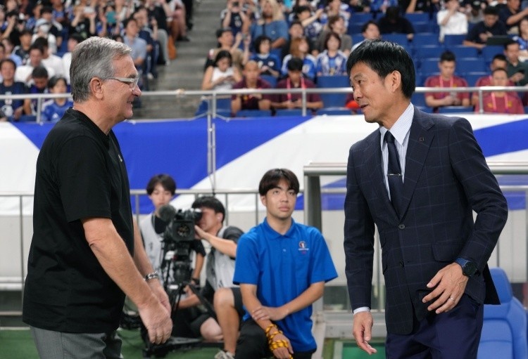 日本在36强赛阶段主打433和343两种阵型,森保一基于双方实力差距较大的客观事实,选择了后者作为本场的战术蓝本。阵型顶端有三名攻击手,两翼由前场球员担任,森保一在人员选择上同样比较激进。伊万科维奇在第二梯队中安插了费南多、阿兰和拜合拉木等冲击型球员,森保一也留足了后手。在卡塔尔之旅中扮演过关键角色的前田大然和镰田大地坐在替补席上,上届12强赛中给国足球员留下过深刻印象的伊东纯也同样在等待召唤。